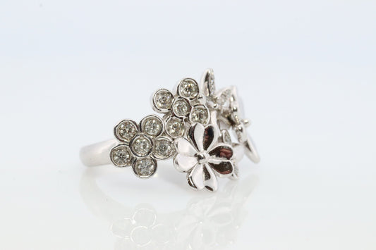 Platinum Flower Cluster ring. Diamond bezel set Daisy Flower bouquet band. Heavy Platinum Intricate Embossed design. Valentines Gift.