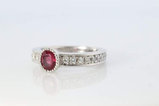 Ruby Diamond Solitaire ring. Platinum PT900 Genuine Ruby Diamond Eternity band.