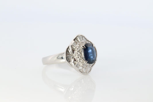 Sapphire and diamond Halo ring. Platinum Blue natural sapphire Ballerina ring