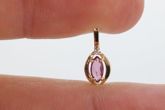 Ruby and diamond pendant. 14k precious marquise ruby pendant. st(25)