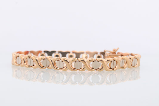 Screw Head Link Bracelet 14k Gold. XO XO Fancy 14k yellow gold Chain Link Bracelet. Multi-tone Love Kiss Bracelet. st(380)