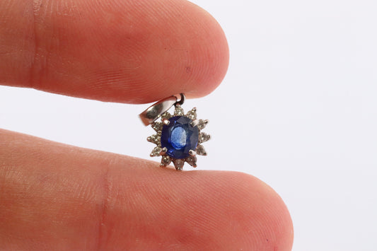 Sapphire Pendant. Genuine Sapphire and Diamond halo Platinum Pendant. PT900 Plat Oval Sapphire Diamond Solitaire Pendant Necklace.