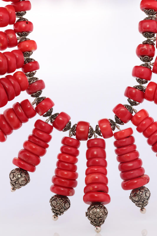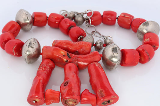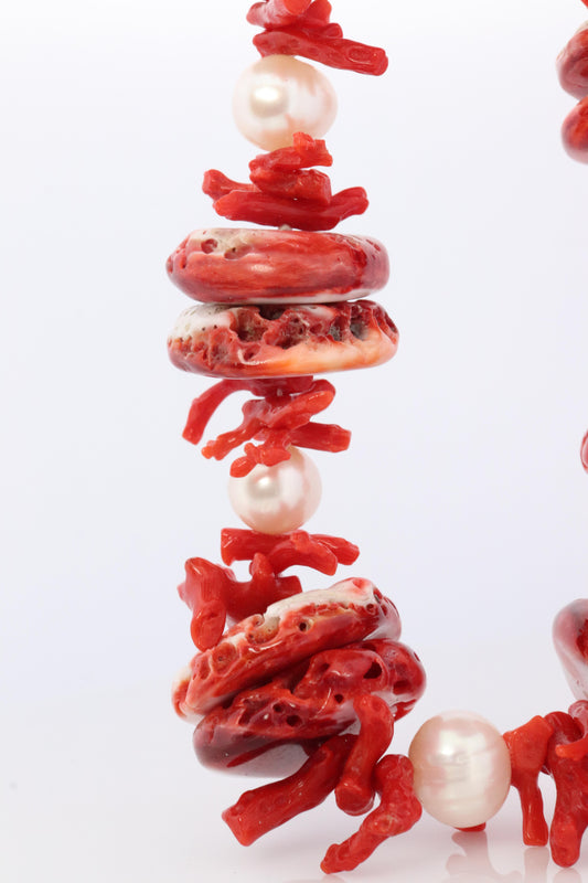Sterling Silver RAW Coral, coral branches and Pearl Necklace