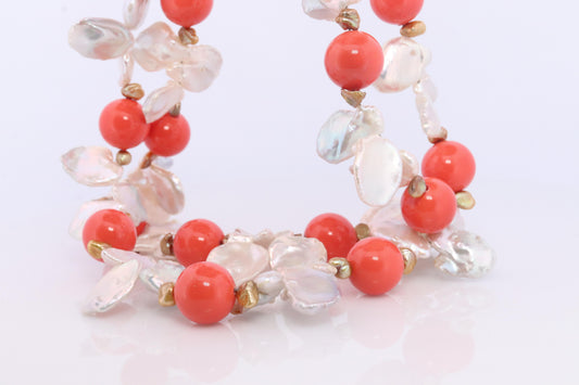 Sterling Silver Kiesha Pearls with Shell Pearls and Coral Necklace