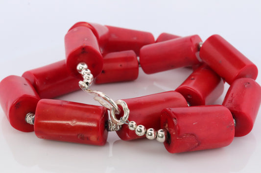 Sterling Silver RAW Coral and Onyx Bead Necklace