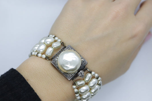 Sterling Silver Faux Pearl Bracelet. Vintage st(25)