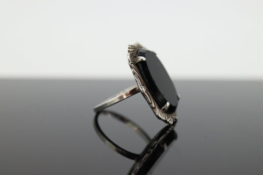 Sterling Silver Oval Onyx ring. Engraved Outline Vintage. st(37)