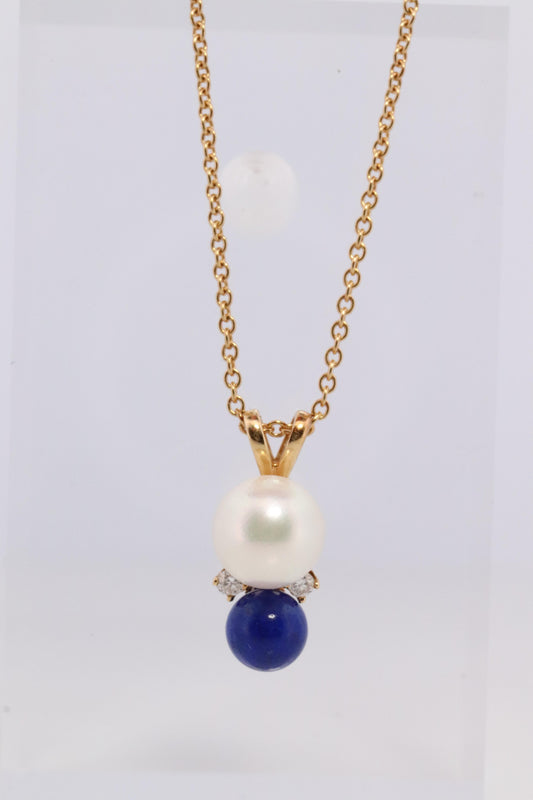 Tiffany and Co Pearl Diamond Lapis Pendant. 18k Tiffany Elsa Peretti Necklace