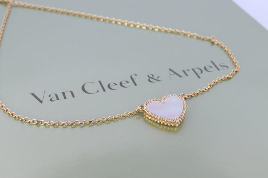Van Cleef Arpels Lucky Alhambra Necklace. Genuine VCA 18k YG Shell Heart Pendant