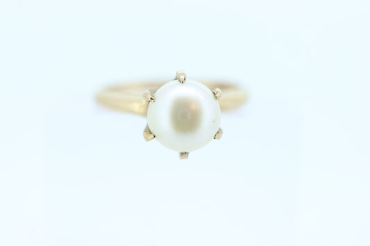 Victorian Pearl Claw Set ring. 10k Yellow Gold victorian solitaire ring. st(60/55)