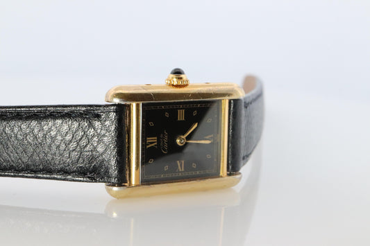 Vintage Must de Cartier Tank Black Dial Watch Vermeil ARGENT Small Manual Tank