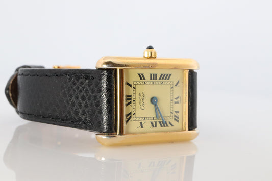Vintage Must de Cartier Tank Pillar 1613 Dial Watch. Vermeil ARGENT Small Tank