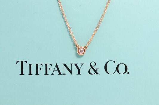 Vintage Tiffany Co Necklace Elsa Peretti Diamond by the Yard Solitaire Rose Gold