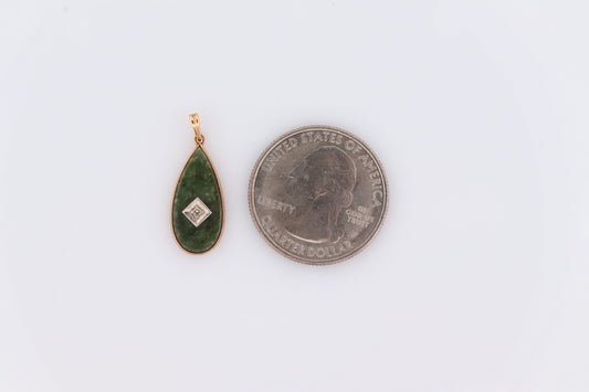14k Jade and Diamond Pendant. Budlong, Docherty & Armstrong BDA Art Deco Tear Pendant for a necklace. Pear Jade Diamond Pendant.