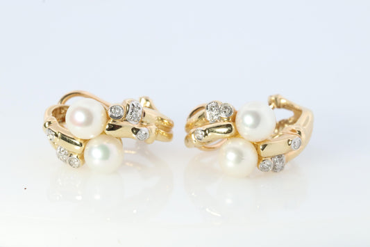14k Pearl and Diamond stud earrings. Elegant and Dainty Pearl diamond studs. st(28/75)