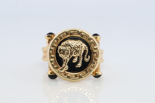 14k Panther Leopard Jaguar Cheetah Onyx ring. Etruscan Revival Onyx Adjustable Ring.