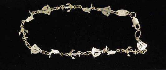 14k Sea Dolphin Sailboat Anchor Charm bracelet. Nautical Bracelet. Marine Bracelet. Michael Anthony MA bracelet