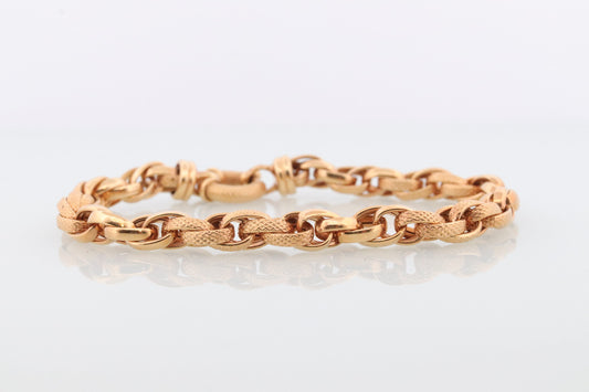 14k UNOAeRRE Textured Link Chain BRACELET. 14k LOOP Italian Bracelet 6.9g