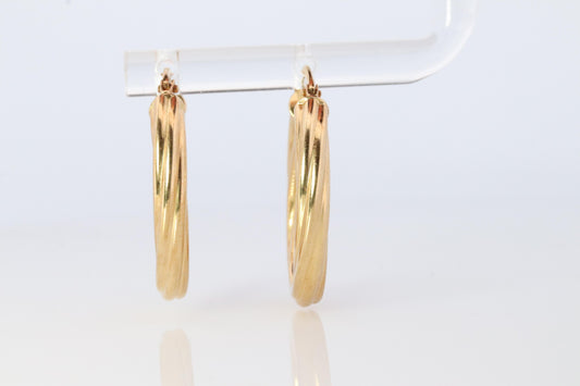 18k Gold Puffed Hollow Twisted HOOP Earrings. MILOR Texture Full HOOPS.