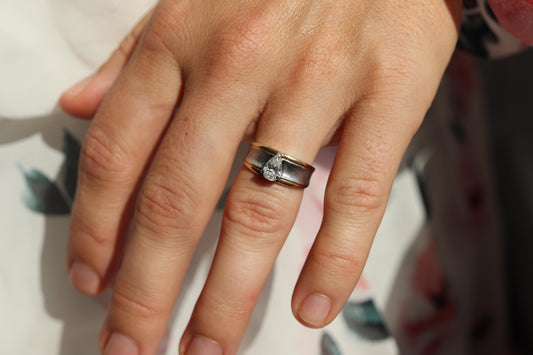 18k Filigree three diamond shield ring. 18k Art Deco trio triple diamond shield ring. Antique Shield Diamond ring.