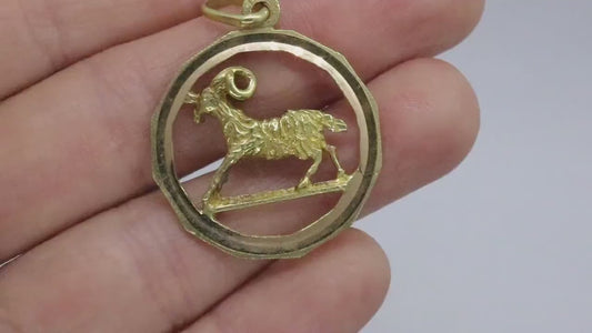 18k GOAT RAM Heavy Pendant. 750 18k Large and Heavy round Pendant Charm made in Italy 6grams