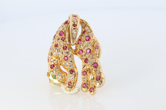 18k Panther Leopard Jaguar Cheetah Ruby Pendant. Encrusted Rubies and Diamonds.