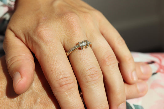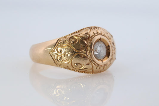 18k Round Genuine Diamond Solitaire Ring. Ornate Engraved Bezel Gypsy Shank.