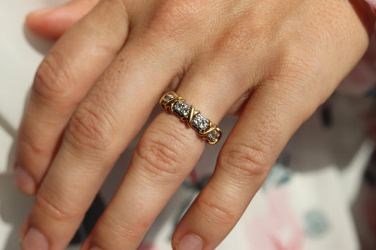 18k Platinum Diamond XOXO criss cross ring. 18k Yellow Gold Pt900 Infinity band