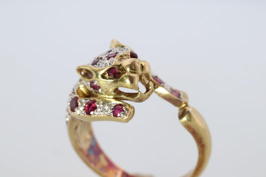18k Panther Leopard Jaguar Cheetah Ruby ring. Encrusted Rubies Ready to Pouce