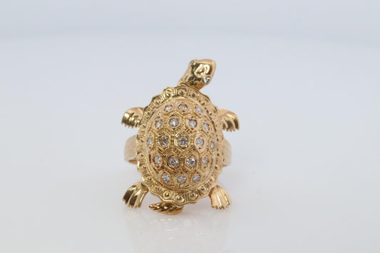 18k TURTLE ring. DIAMOND encrusted Turtle 3D Animated Seaturtle ring.