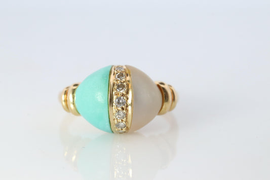 18k Turquoise and MOP Ring. Turquoise Diamond Mother of Pearl Statement Ring
