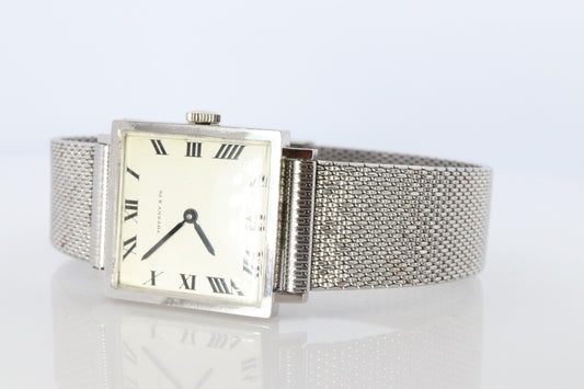 18k Tiffany and Co Watch. Tiffany Mens Dress White Gold Wristwatch
