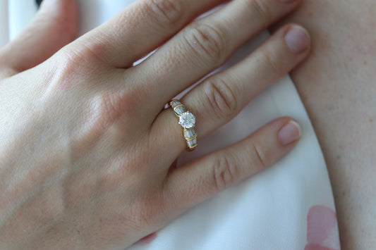18k Round VS Genuine Diamond Solitaire Ring . Engagement set. Baguette channel set Wedding band. Stunning VS Diamond. Total 1ct.