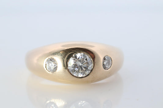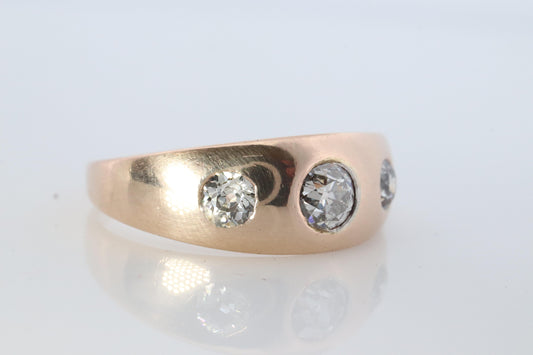 Antique 14k Triple Diamond 1ctw ring. Gypsy Diamond bezel set into Signet band.