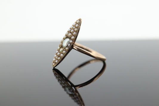 Antique 14k PEARL seed MOP cluster Marquise Navette ring. ANTIQUE Victorian Pearl seed Marquise cluster ring