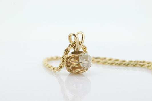 Antique Diamond solitaire pendant Buttercup setting. 14k Gold OLD Mine Diamond