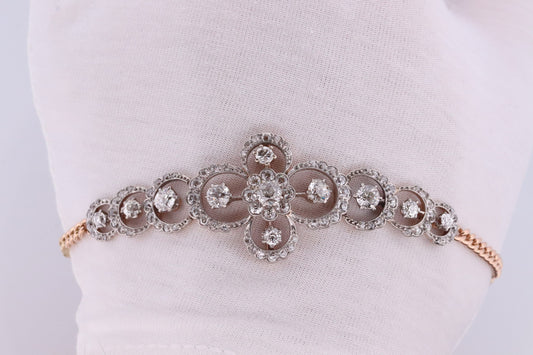 Antique French Belle Epoque Platinum and 14k Diamond Daisy Bracelet. Art Nouveau chocker converted to bracelet. 4.5ct+ Appraised.