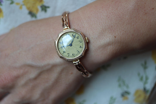 Antique Rolex Womens Cocktail Watch. 9k YG 2699 Manual Windup. Circa 1930s
