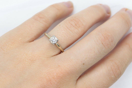 Art Deco Diamond Solitaire Ring. 14k Gold European Cut diamond engagement Ring