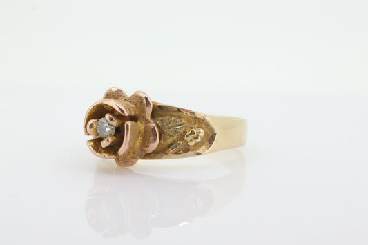 Black Hills Gold Ring. Antique Diamond Ring. 10k Rose Pedals diamond set Gold. Black Hills Gold Design with a Diamond. st(83)