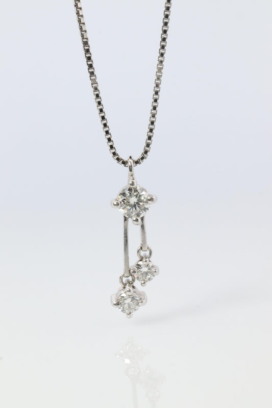 Diamond Dangle Tassel pendant. Platinum Pt900 Round diamond 0.26CT Necklace