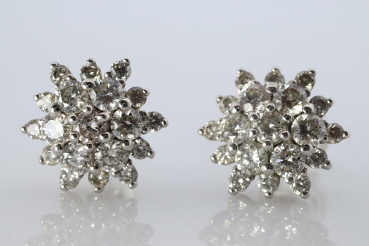 Diamond Flower Cluster Stud Earrings. Platinum Earrings. Pt900 and 1CTW dia.