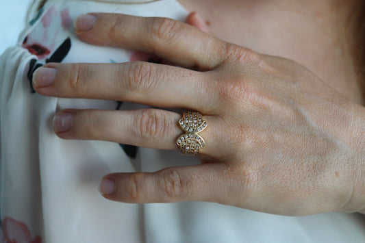 Diamond Ring. 18k Yellow Gold 1CTW Diamond Ring. Double C X Crossover Channel set diamonds wide band.