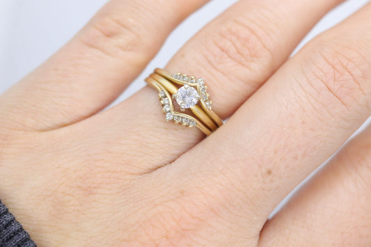 Diamond Solitaire Ring with Jacket. 14k Diamond Engagement Ring Set. Wedding kit