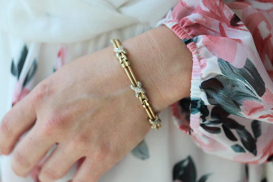 Diamond X slide Bracelet. 14k Yellow White Gold XO Diamond Slide cord Bracelet. 27.4grams Two strand station bracelet. st(302/50)