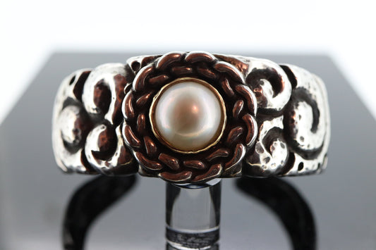 Dian Malouf Cuff Bracelet. Mabe Pearl Heavy sterling Silver and 14k Gold Cuff Bangle Bracelet DLM Collection (st119)