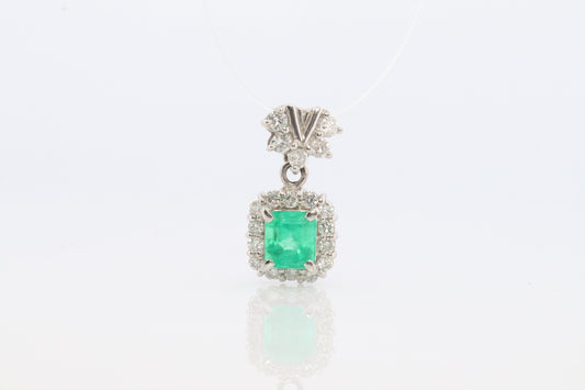 Emerald Pendant. Genuine Emerald and Diamond halo Platinum Pendant. PT900 Plat Square Emerald Diamond Solitaire Pendant Necklace.