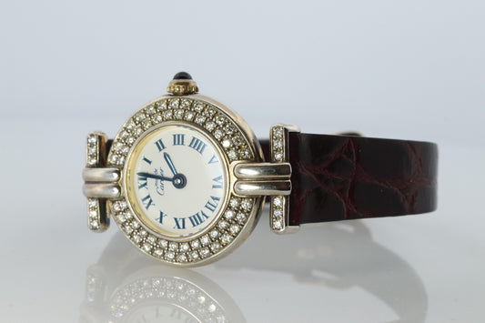 Genuine Cartier Diamond Watch Must de Cartier Colisee Round Argent 590002