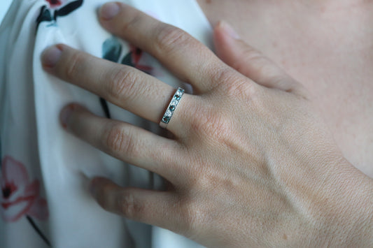 Genuine Alexandrite Ring. Diamond Alexandrite Eternity band 900 Platinum setting round Natural ALEXANDRITE ring with diamond accents.
