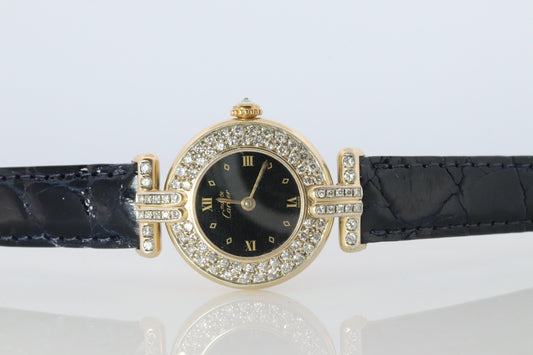 Genuine Cartier Diamond Watch. Must de Cartier Vendome Round Argent Roman Dial